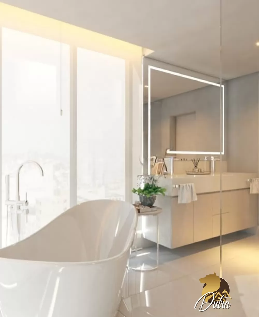Apartamento com 3 suítes, sendo 1 master com home embutido, closet (sr. e sra.), ventilador de teto Hunter e ar condicionado, banheiro com 2 pias, ducha, banheira,...